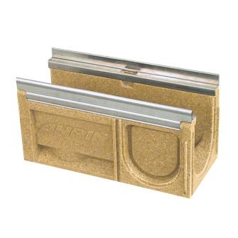 De lijngoot is gemaakt van polymeerbeton met een gegalvaniseerde rand. Polymeerbeton is een samenstelling tussen natuurlijke mineralen kwarts en reactieve harsen. Hiermee is de goot bestendig tegen chemicaliën en heeft een lange levensduur.