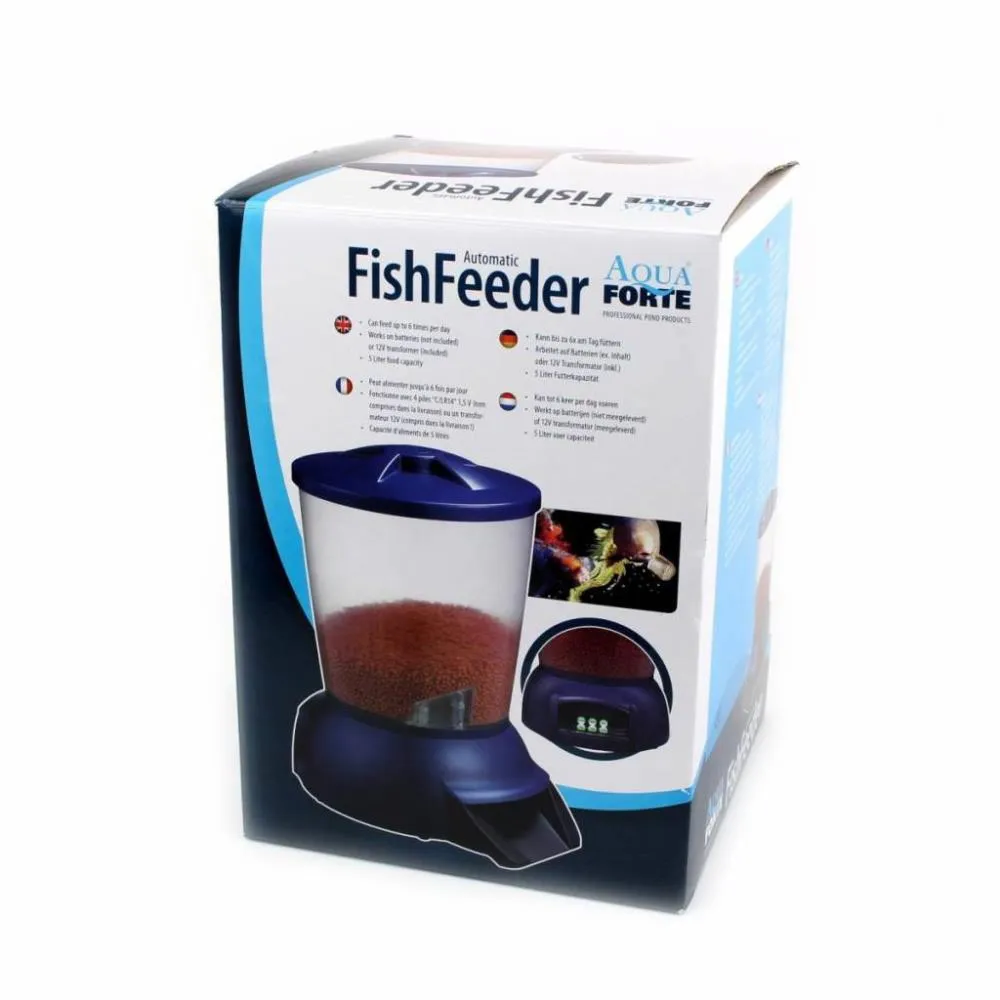 Aquaforte automatic fishfeeder voerautomaat voor het volledig automatisch voeren van de vissen. Tot 6 keer per dag voeren & per voerbeurt in te stellen hoeveelheid.