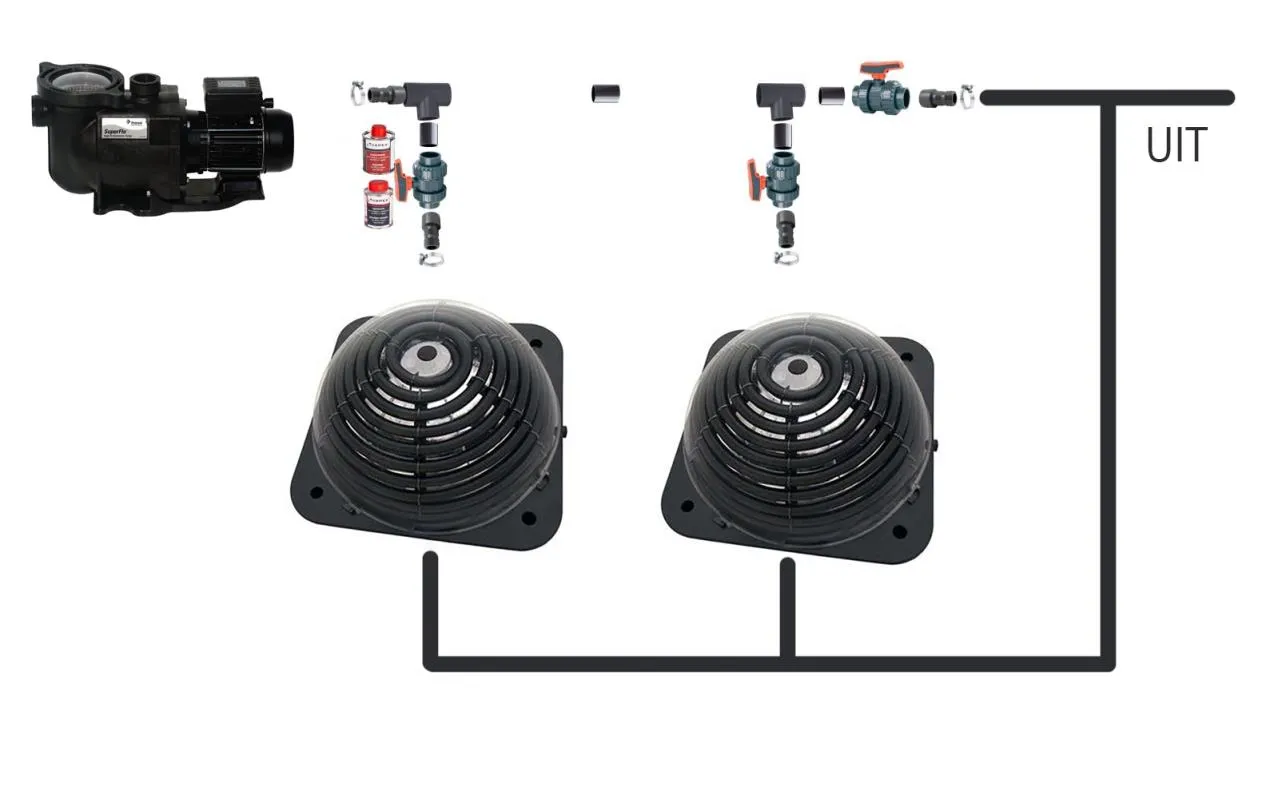 Let op: de premium solarbollen mogen niet direct achter elkaar geplaatst worden. Houd hier rekening mee bij de installatie en het gebruik van een bypass.