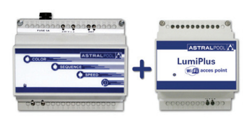 LumiPlus Set met WiFi access point voor het met smartphone of tablet aansturen van LumiPlus RGB LED-verlichting in uw zwembad. Behoudt altijd de controle over uw verlichting. De app kunt u gratis downloaden en is voor zowel Andriod als Apple te gebruiken. Max. 900V belasting.