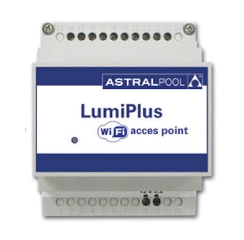 Met de AstralPool LumiPlus WiFi access point+ bedien je eenvoudig je zwembadverlichting vanaf je smartphone. Deze module is alleen werkzaam bij een **bestaande installatie** die al is voorzien van de ontvangersmodule. Verbind dit access point met een LumiPlus RGB-modulator.