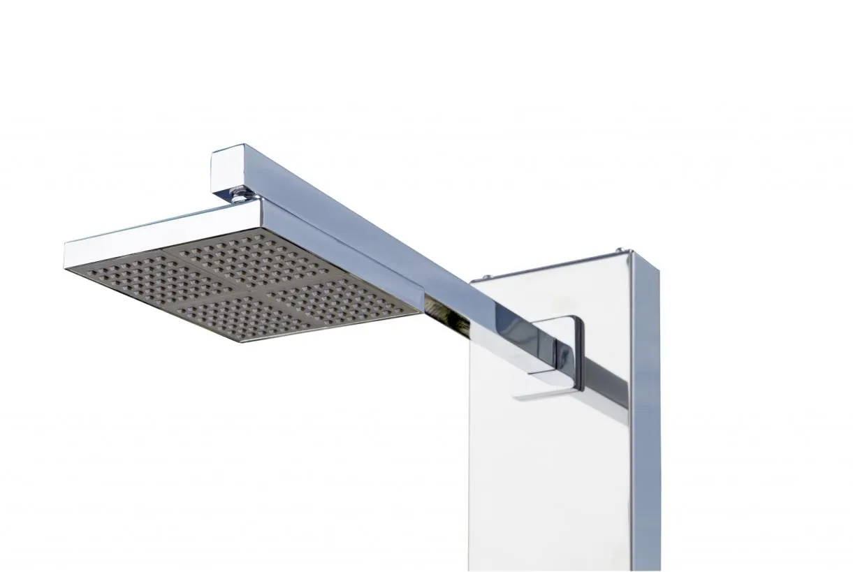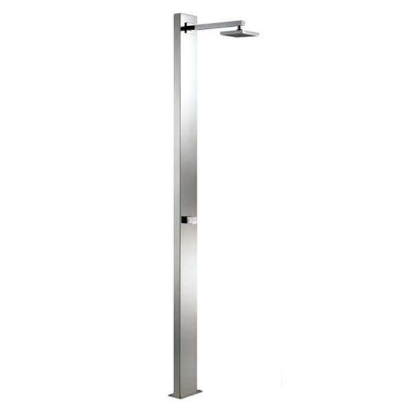 Astralpool Niagara douche gepolijst RVS-304. Deze buitendouche beschikt over een verstelbare vierkante anti-kalk douchekop en kraan.