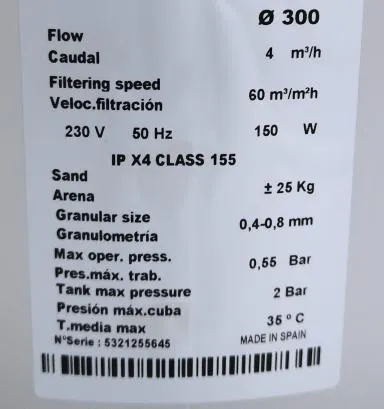- Filtertype: zand 25 Kg / glas (niet bijgeleverd)