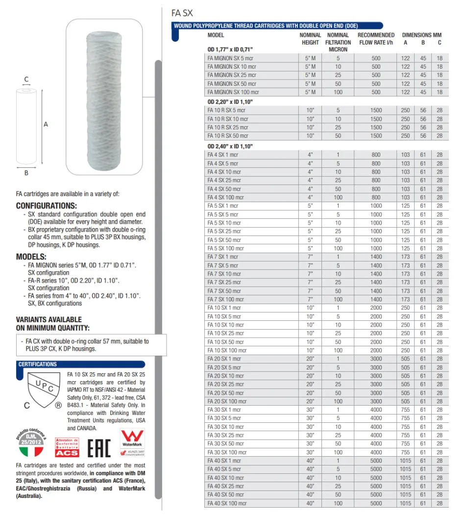 De Atlas Filtri PP filterzeef - type FA 10 SX | 25 micron is uitermate geschikt voor het filteren van fijne deeltjes uit water zoals zand en roest. Het filteren van water is goed voor de levensduur van leidingen en appendages. De Atlas Filtri filterzeef kan ingezet worden als filter of voorfilter. De filterzeef kan niet uitgespoeld worden en heeft een levensduur van 3 – 6 maanden.