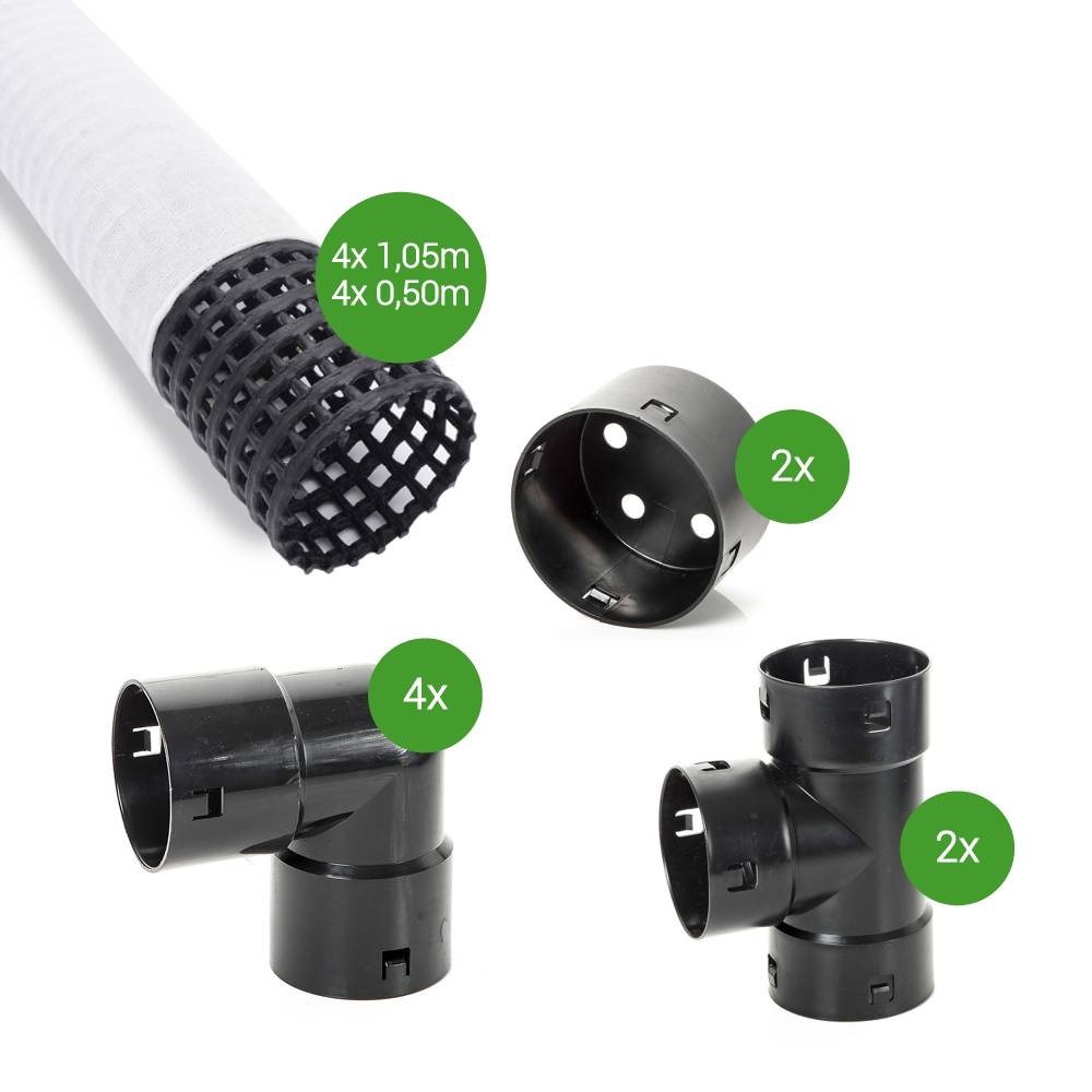 Dankzij dit boombeluchtingspakket beschikt u direct over alle benodigdheden voor een beluchtingssysteem. Het pakket is geschikt voor kleine- en middelgrote bomen. Beluchting en boombewatering is een belangrijk onderdeel van boomverzorging, doordat het sterk bijdraagt aan de ontwikkelingen van bomen op plekken waar het weinig zuurstof en voeding verkrijgt. Dit gebeurt voornamelijk in stedelijke gebieden waar de bomen weinig ruimte krijgen voor een optimale ontwikkeling.