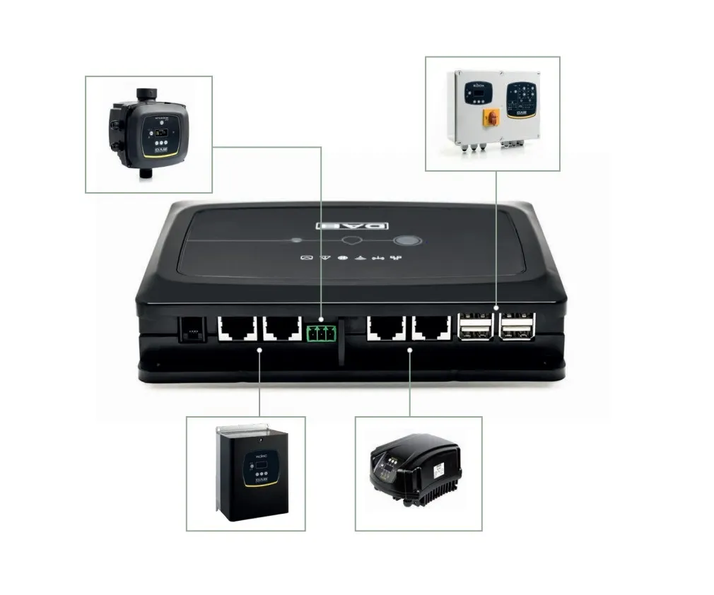 Bedien je pomp op afstand met de handige DAB D.Connect Box. De D.Connect Box sluit je eenvoudig via WiFi of een ethernetkabel aan op de modem in je woning. Hierna kun je eenvoudig via de app je pompen aan deze D.Connect Box verbinden. Denk hierbij aan drukverhogingspompen, circulatiepompen, Beregeningspompen, vuilwaterpompen en meer. De pompen communiceren hiervoor direct via Bluetooth of via een kabel met de D.Connect box. Via de D.Connect Box kun je meerdere pompen met de DAB cloud service verbinden.
