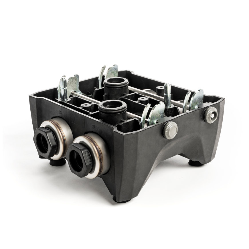 Deze docking is voorzien van 1 1/4" - 2" aansluitingen. Wanneer je kiest voor een meervoudige pompopstelling dan heb je voor iedere pomp een aparte E.sydock nodig. Dit maakt het mogelijk om tot maximaal 4 pompen met elkaar te koppelen.