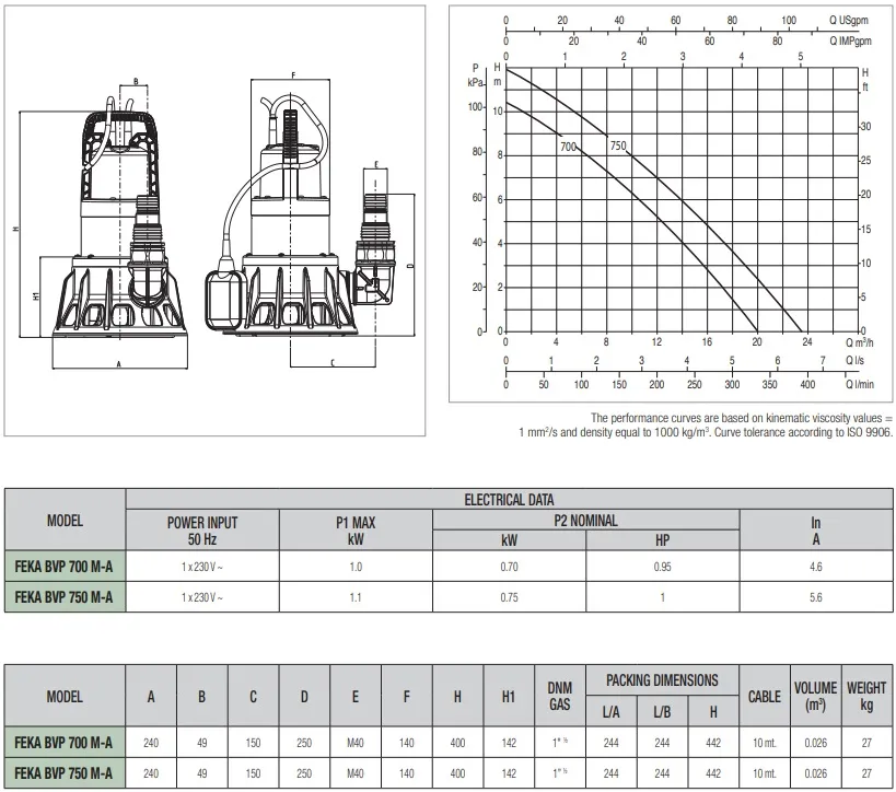 De DAB Feka BVP 750 M-A is geschikt voor continu gebruik en heeft een ingebouwde thermische beveiliging. De pomp heeft een maximale pompcapaciteit van 18.000 liter per uur en een maximale opvoerhoogte van 12 meter (1,2 bar). De DAB Feka BVP 750 M-A is een 230V pomp met een vermogen van 0,75 kW en wordt standaard geleverd met 10 meter stroomkabel.