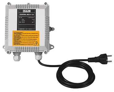 Deze standaard set wordt geleverd met een DAB controlbox. Voor een optimale werking van de pomp adviseren wij u om de pomp uit te voeren met een ESC Plus schakelkast, Active driver of Adac besturing. Deze pomp is ook te verkrijgen in een 400V uitvoering.