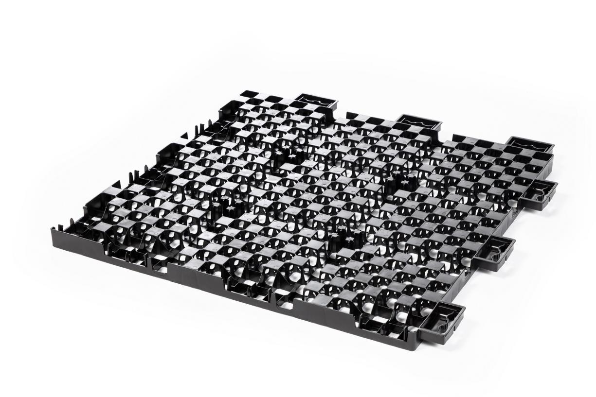 De perfecte verhouding tussen contactoppervlaktes bovenaan en onderaan de tegel zorgt voor een optimale lastenspreiding naar de ondergrond. De perfecte garantie voor een egaal kunstgazon zonder oneffenheden! Vermijd dure en complexe funderingswerken en werk tijds- en kostenbesparend!