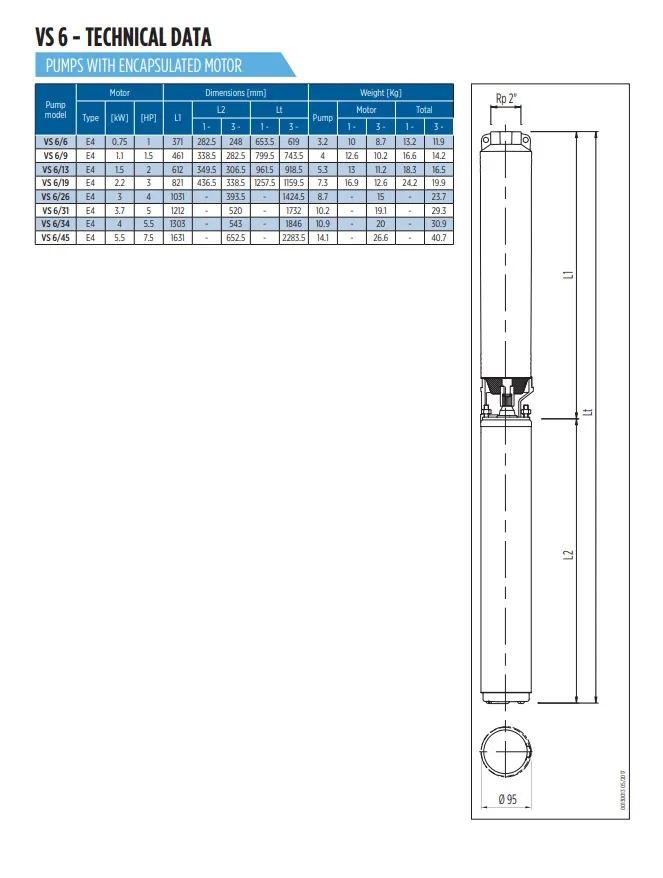 De Franklin VS 6/9 is een robuust en efficiënt hydraulisch pompdeel met een vermogen van 1.5 PK (1.1 kW), geschikt voor 4” bronnen. Dit pompdeel wordt gecombineerd met een motordeel en is ideaal voor toepassingen in de landbouw, industrie, huishoudens en drukverhogingssystemen.