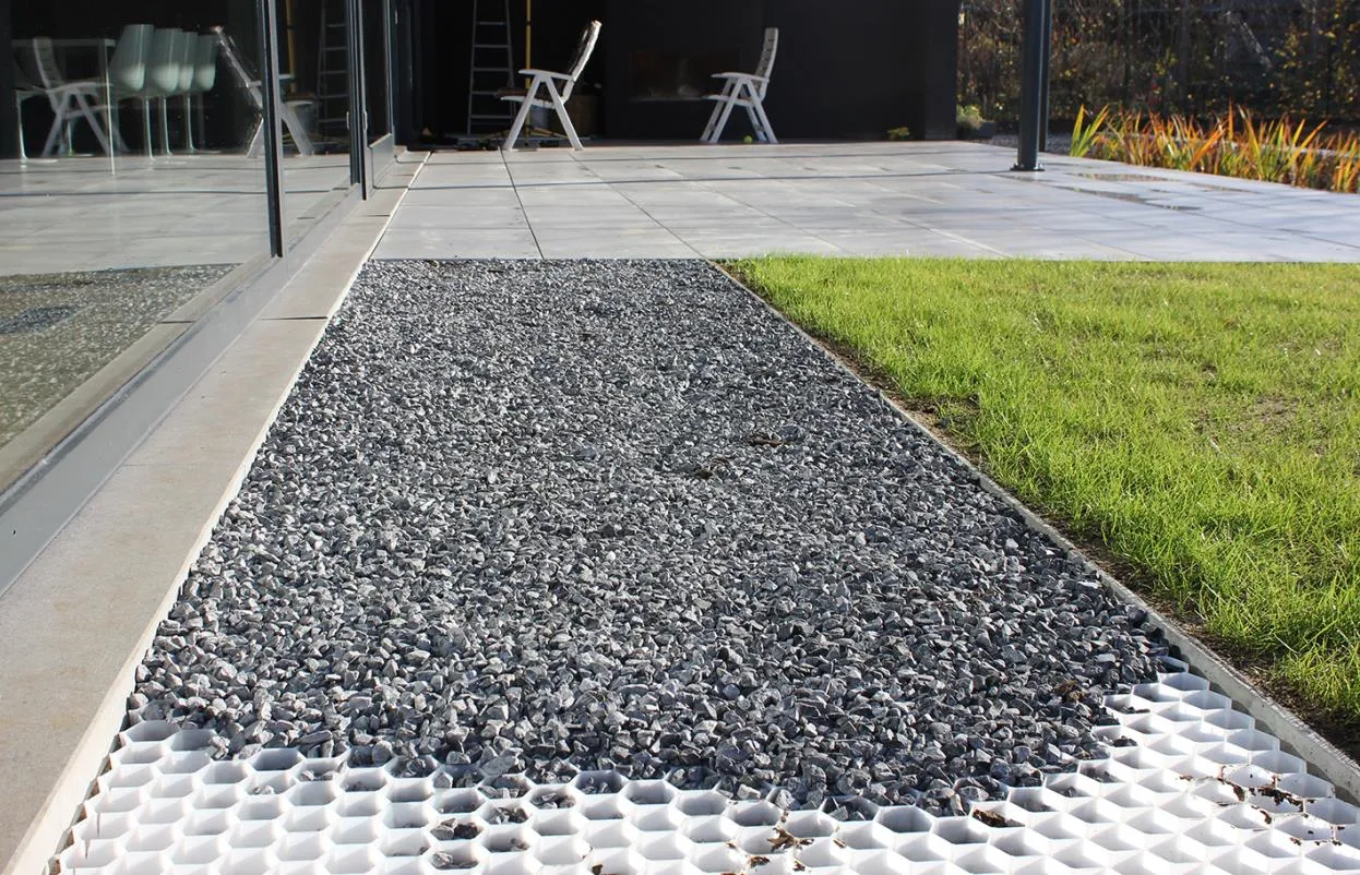 (TIP) Heb je te maken met agressievere wortelgroei en/of onkruiden? Gebruik dan een gronddoek onder de grindplaten. Zo heb je ook in de toekomst een strakke & schone uitstraling.