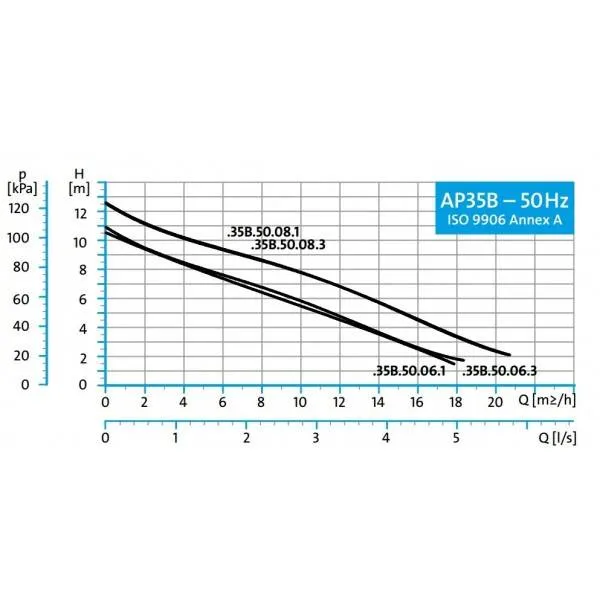 De Grundfos AP35B 50.08.3 beschikt over een koelmantel die de motor continu koelt met de verpompte vloeistof. De pomp heeft een maximale pompcapaciteit van 21.000 liter per uur en een maximale opvoerhoogte van 12 meter (1,2 bar). De Grundfos AP35B 50.08.3 is een 400V pomp met een vermogen van 1,25 kW en wordt standaard geleverd met 10 meter stroomkabel(zonder stekker).