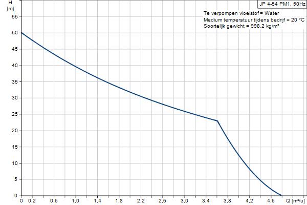 De Grundfos JP 4-54 PM1 heeft een ingebouwde thermische beveiliging en kan tot 8 meter diep het water aanzuigen. De pomp heeft een maximale pompcapaciteit van 4.800 liter per uur en een maximale opvoerhoogte van 50 meter (5,0 bar). De Grundfos JP 4-54 PM1 is een 230V pomp met een vermogen van 0,75 kW en wordt standaard geleverd met aansluitkabel/stroomkabel.