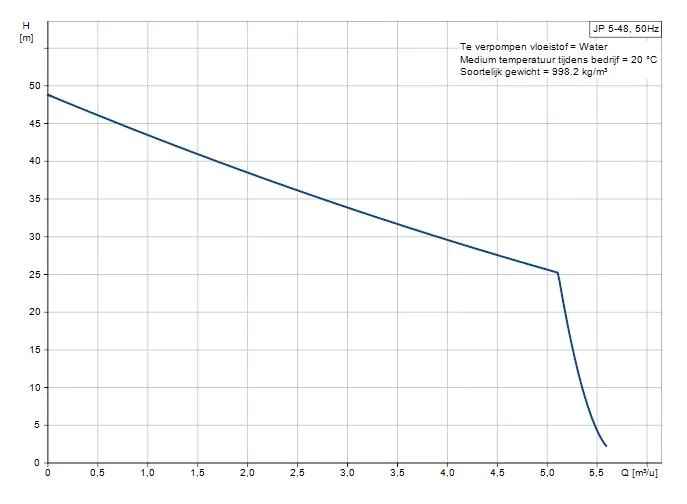 De Grundfos JP 5-48 heeft een ingebouwde thermische beveiliging en kan tot 8 meter diep het water aanzuigen. De pomp heeft een maximale pompcapaciteit van 5.000 liter per uur en een maximale opvoerhoogte van 48 meter (4,8 bar). De Grundfos JP 5-48 is een 230V pomp met een vermogen van 1 kW en wordt standaard geleverd met aansluitkabel/stroomkabel.