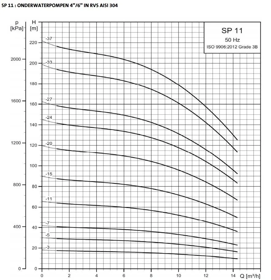 Grundfos SP 11-27 (400 V) bronpomp specificaties