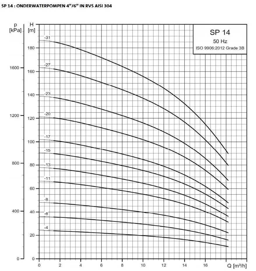 Grundfos SP 14-6 (230 V) bronpomp specificaties