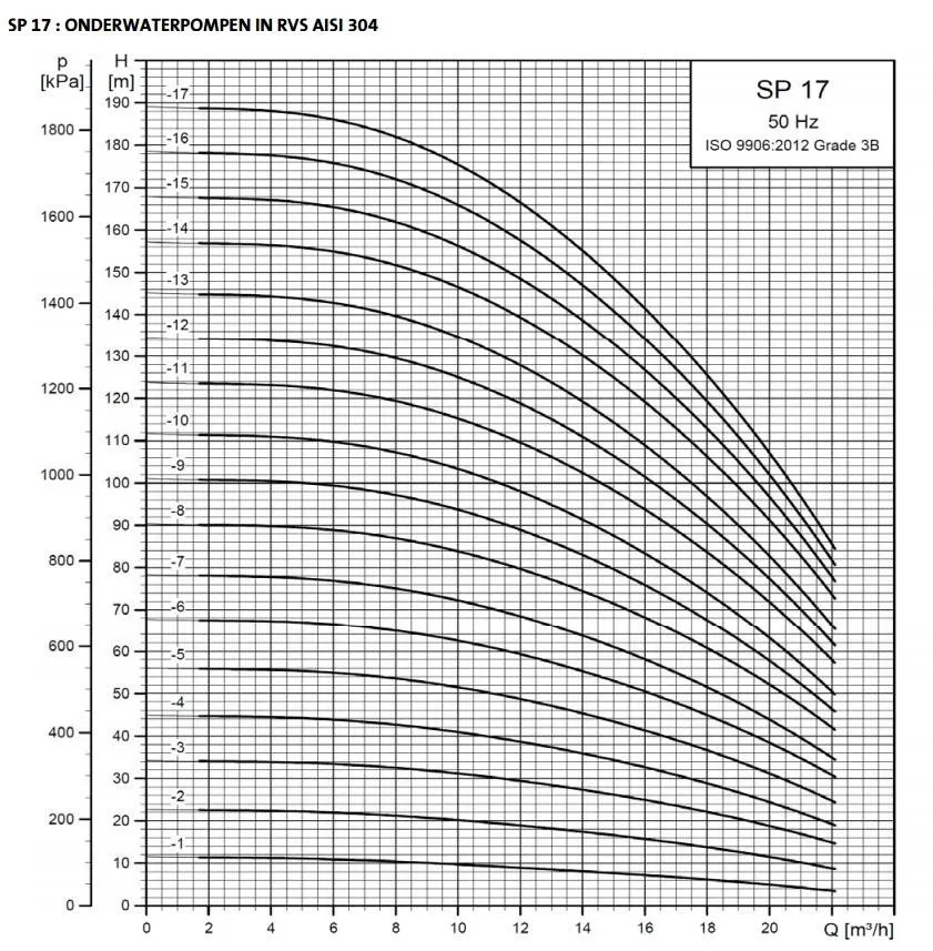 Grundfos SP 17-10 (400 V) bronpomp specificaties