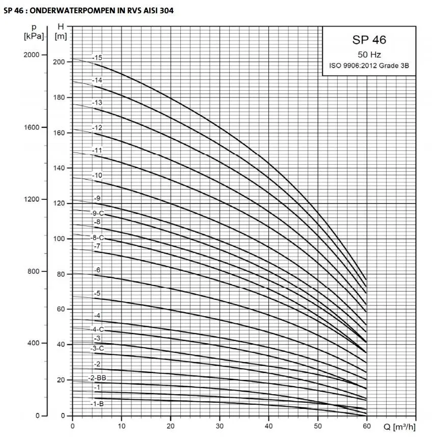 Grundfos SP 46-1 (400 V) bronpomp specificaties