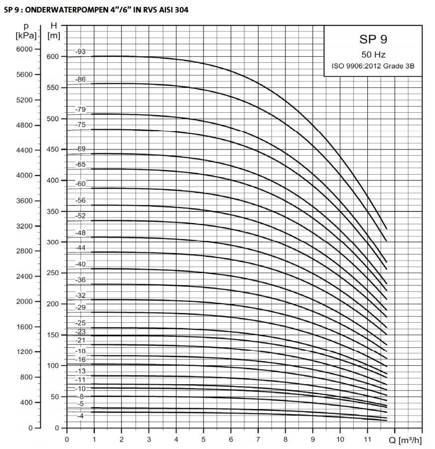 Grundfos SP 9-4 (400 V) bronpomp specificaties