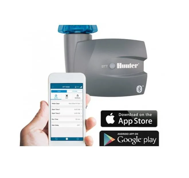 Hunter BTT-101 kraancomputer met bluetooth is eenvoudig te bedienen met uw smartphone dankzij de Hunter APP. Eenvoudig op uw kraan aan te sluiten en programmeerbaar met twee starttijden.
