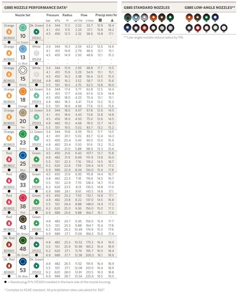 Specificaties Hunter G-885C golfbaan sproeier
