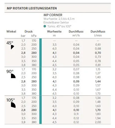 Door de zeer lage werkdruk en waterverbruik zijn de MP nozzles geschikt voor installatie op het vaste waterleidingnet.