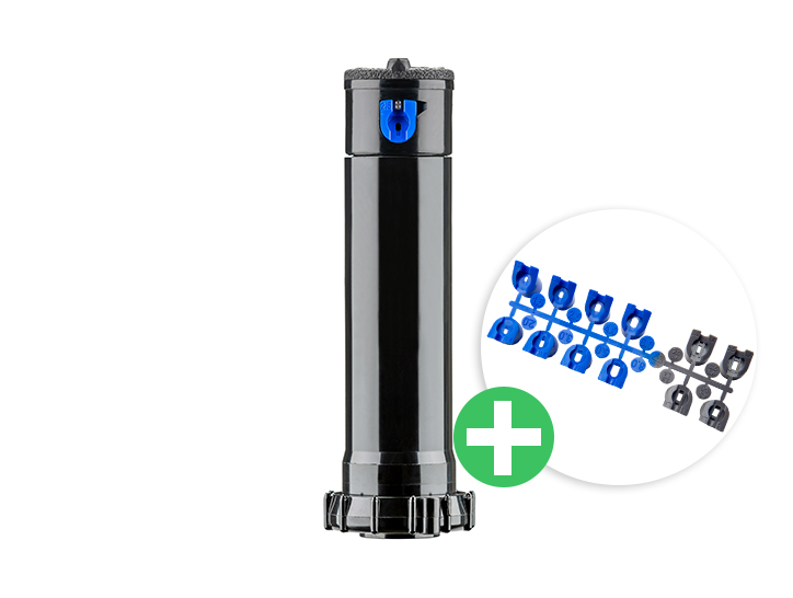 De Hunter PGP-Ultra-00 is een professionele sproeier voor (middel) grote tuinen en gazons. De PGP-serie wordt gezien als de grote broer van de PGJ-serie met een sproeibereik van 4,9 tot 14 meter. De sproeier heeft een instelbare sproeihoek van 50° - 360° en is een vast model sproeier. Bij het opvoeren van de druk komt de sproeier omhoog en wanneer de druk wegvalt zal deze automatisch terugzakken in de grond.