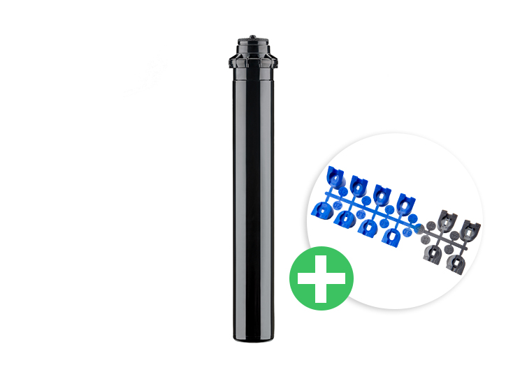 Standaard geleverd met 8 normale en 4 low angle nozzles / sproeimondjes.