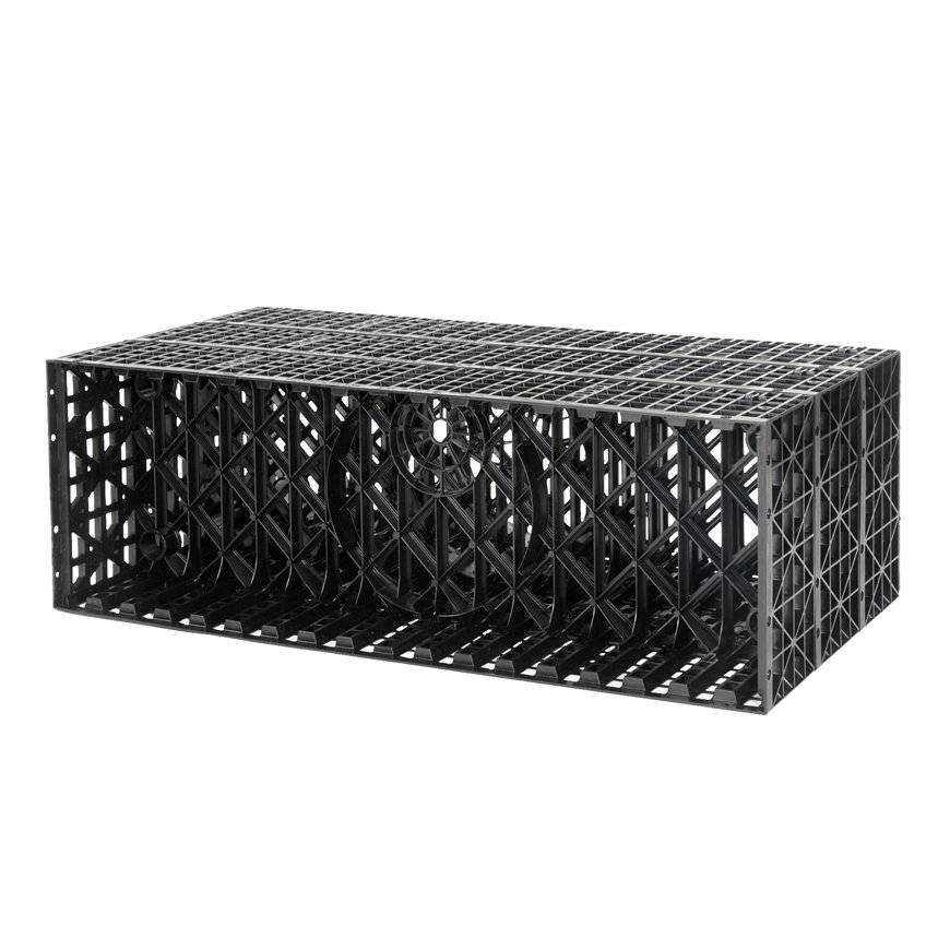 Dit infiltratiekrat is ideaal voor het crëren en stapelen van grotere infiltratiesystemen. Door het ontbreken van het geotextiel koppelt u gemakkelijk verschillende infiltratiekratten op elkaar. De relatief grote afmeting zorgt dat een groot regenwaterinfiltratiesysteem snel gebouwd wordt.