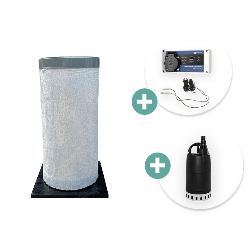 De put is volledig geperforeerd en voorzien van geotextiel. Dit zorgt ervoor dat er een snelle toestroom plaatsvindt met tevens een goede filtering. Met de sensoren kun je volledig zelf het inschakel en uitschakel moment van de pomp bepalen. Dit werkt eenvoudig met een schuifprincipe. De kelderput is afsluitbaar met een deksel.