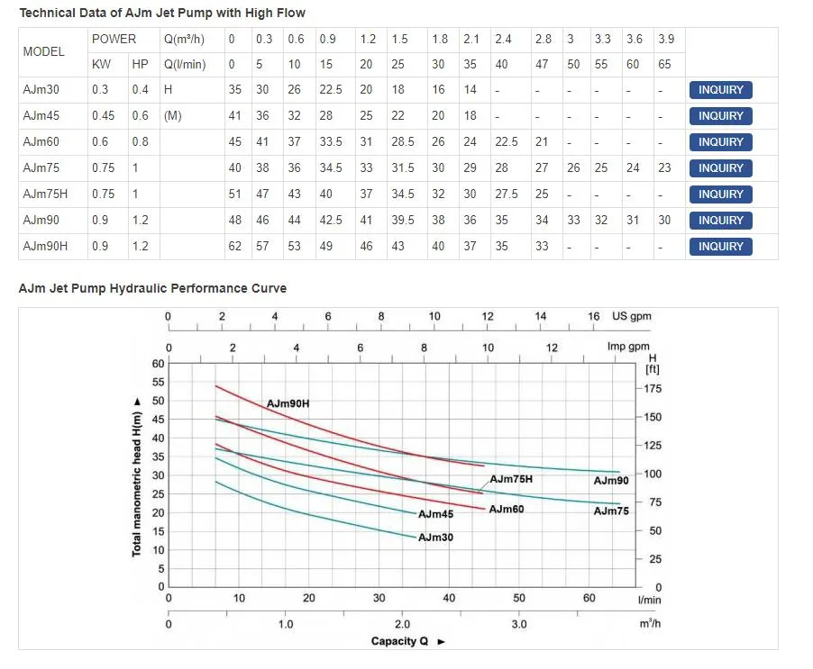 De Leo AJM 75SE heeft een ingebouwde thermische beveiliging. De pomp heeft een maximale pompcapaciteit van 3.300 liter per uur en een maximale opvoerhoogte van 46 meter (4,6 bar). De Leo AJM 75SE is een 230V pomp met een vermogen van 0,75 kW en wordt standaard geleverd met aansluitkabel/stroomkabel.