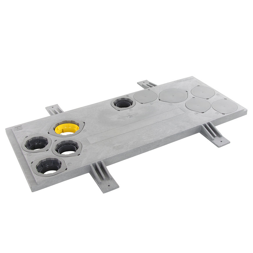 Met deze meterkastvloerplaat crëert u een perfecte fundering voor het doorvoeren van leidingen en kabels in de meterkast. Hij is voorzien van het KOMO-keurmerk, zodat u gegarandeerd volgens de richtlijnen werkt. De mantelbuizen zijn bij dit model tevens in spiegelbeeld te plaatsen.