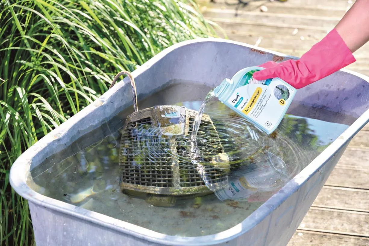 De Oase AquaActiv PumpClean is ideaal voor het reinigen van vijverpompen, zeven, kwartsglazen en meer. De PumpClean verwijdert kalk en andere aanslag binnen 24 uur en verlengt daarom de levensduur van de vijverinstallatie. Er is geen chloor en azijn aanwezig, waardoor de vloeistof geur- en kleurloos is.