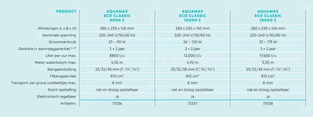De Oase AquaMax Eco Classic 9000C vijverpomp is zeer energiezuinig, met een besparing tot wel 40%.