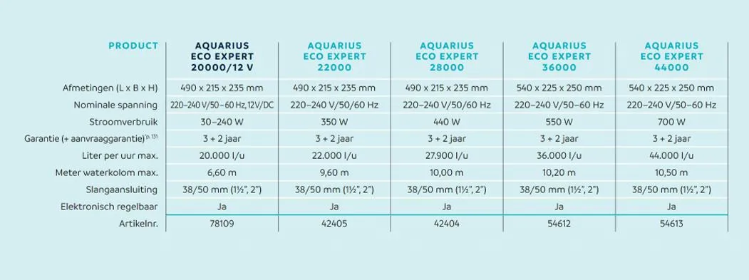 Meegeleverd bij de Aquarius Eco Expert 28000