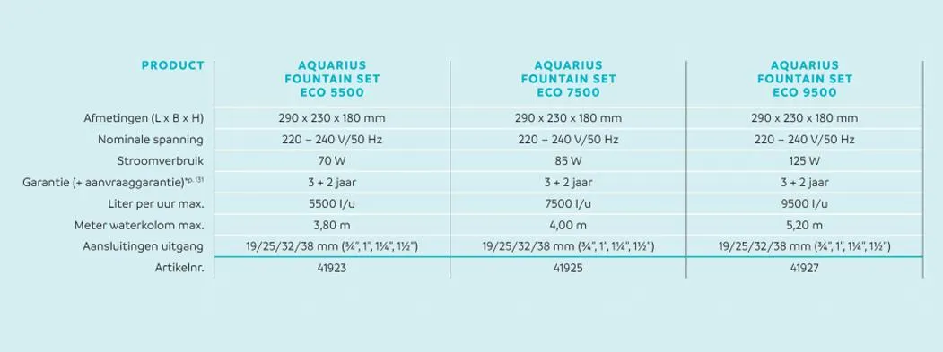 Meegeleverd bij de Aquarius Fountain Set Eco 5500