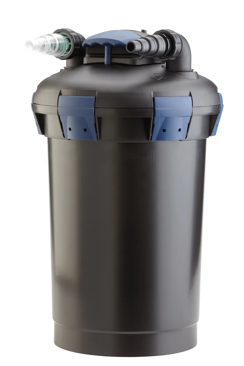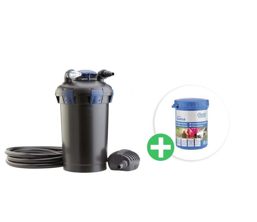 De Oase BioPress Set 10000 is een solide drukfilterset inclusief UVC en filterpomp. De filterset is zeer eenvoudig te onderhouden dankzij de gepatenteerde reinigingsfunctie in de deksel.