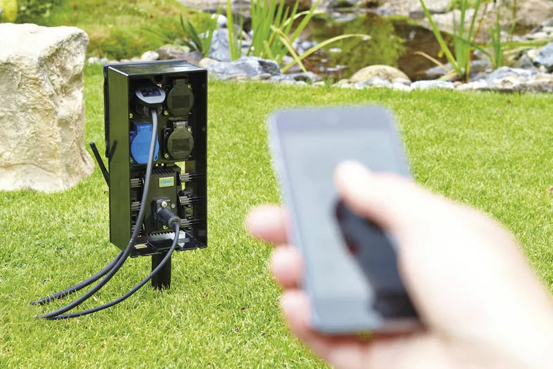 De Oase InScenio FM-Master WLAN EGC Cloud is te gebruiken voor de hele tuin. Via WLAN kunt u uw apparaten gemakkelijk aansturen. Elke stekkerdoos beschikt over een geïntegreerde 24 uur tijdklok.