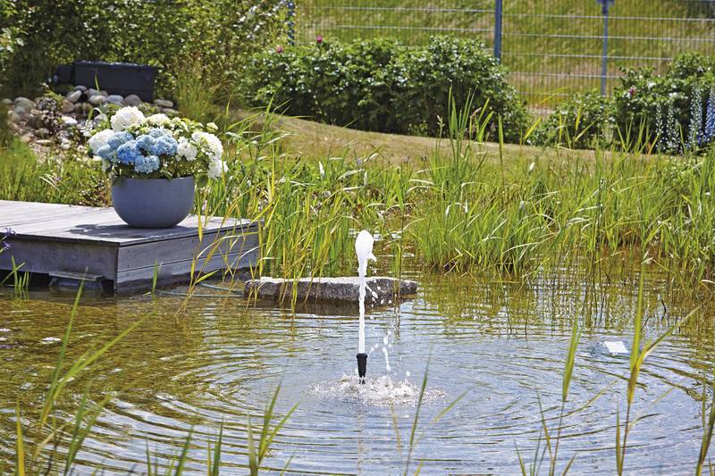 Dit is een waterstand-onafhankelijke sproeier met schuimeffect. Inbouw boven de waterspiegel.