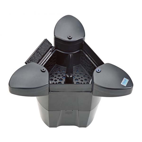 De swimskim van Oase is een complete oppervlakte filter, door de ingebouwde pomp is dit plug & play.
