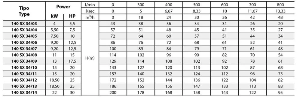 Het Panelli 140 SX 34/13 hydraulisch pompdeel (25 PK) is een volledig 6" RVS 304 gegoten pompdeel en levert uitzonderlijk goede prestaties ten opzichte van zijn concurrenten. Het pompdeel is geschikt voor schoonwatervoorziening binnen huishoudelijke en industriële toepassingen.