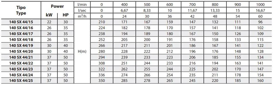 Het Panelli 140 SX 44/20 hydraulisch pompdeel (40 PK) is een volledig 6" RVS 304 gegoten pompdeel en levert uitzonderlijk goede prestaties ten opzichte van zijn concurrenten. Het pompdeel is geschikt voor schoonwatervoorziening binnen huishoudelijke en industriële toepassingen.