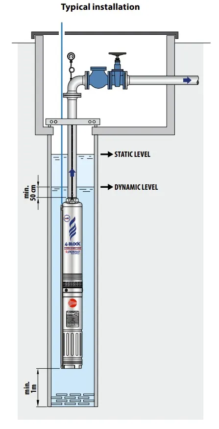 Deze bronpompen zijn geschikt voor particulier gebruik. Er is een minimale brondiameter van 110 mm binnenwerks vereist voor het kunnen plaatsen van de 4BLOCK m 4/9 bronpomp.