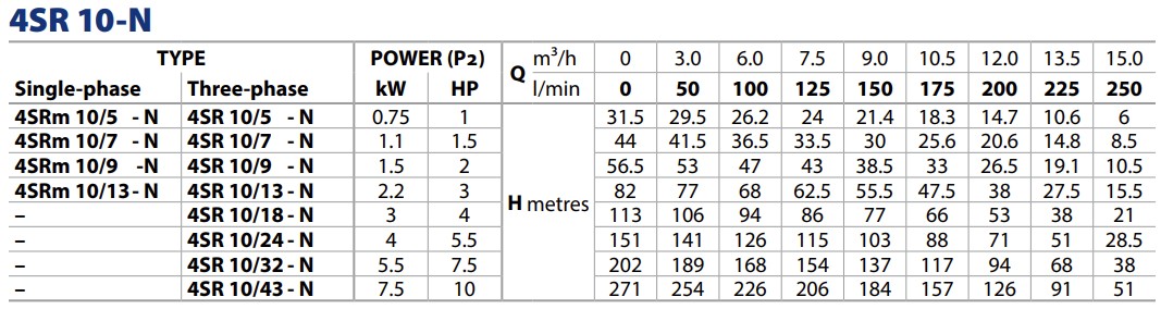 De Pedrollo 4SR10/9-S is een 4" (Ø 98 mm) hydraulisch bronpomp deel, volledig uitgevoerd in RVS AISI 304 met technopolymeer waaiers. De Pedrollo 4SR10/9-S is geschikt voor 4 ' ' Pedrollo of Franklin elektro motoren van 3 PK.