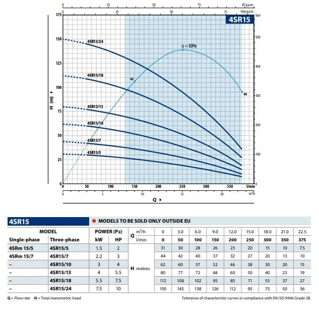 Pedrollo 4SR15/18 bronpomp specificaties