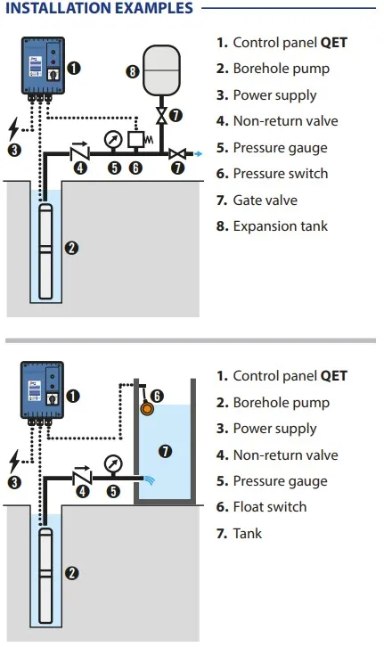 De Pedrollo QET 1000 is een elektrische aansluitkast voor het aansturen van 4 inch bronpompen met een 3-fase aansluiting (400V) en een vermogen van 10 pk / 7,5 kW. De Pedrollo QET 1000 is voorzien van thermische beveiliging, aan- en uitschakelaar en een controlelampje. Met een IP-55 beschermingsgraad is de aansluitkast stofdicht en spatwaterbestendig.