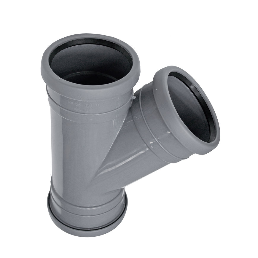 Dit PP T-stuk is voorzien van 3 x een manchetverbinding en een hoek van 45 graden. Met dit PP T-stuk kunt u eenvoudig 3 stuks rioolbuizen op elkaar aansluiten.