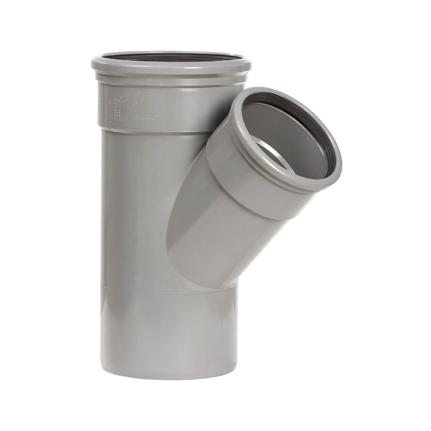 Dankzij dit pvc t-stuk 45 ° mof/spie crëert u eenvoudig een haakse t-verbinding in uw pvc afvoersysteem.