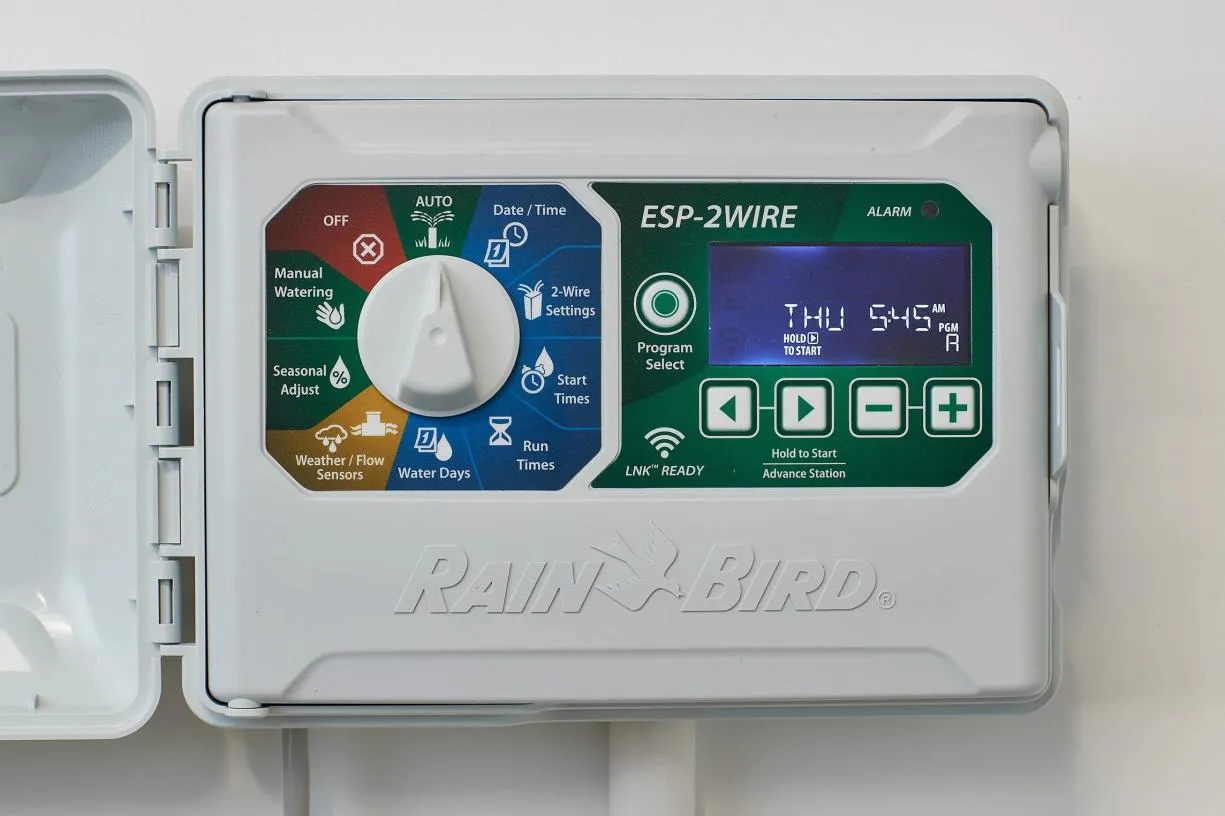 De Rainbird ESP-2wire 50 stations outdoor beregeningscomputer is een zeer gebruikersvriendelijke beregeningscomputer die gebruik maakt van een 2-wire systeem. Hierdoor is de computer te gebruiken in combinatie met een decoder en heeft het een capaciteit tot 50 stations, zonder een extra benodigde module.